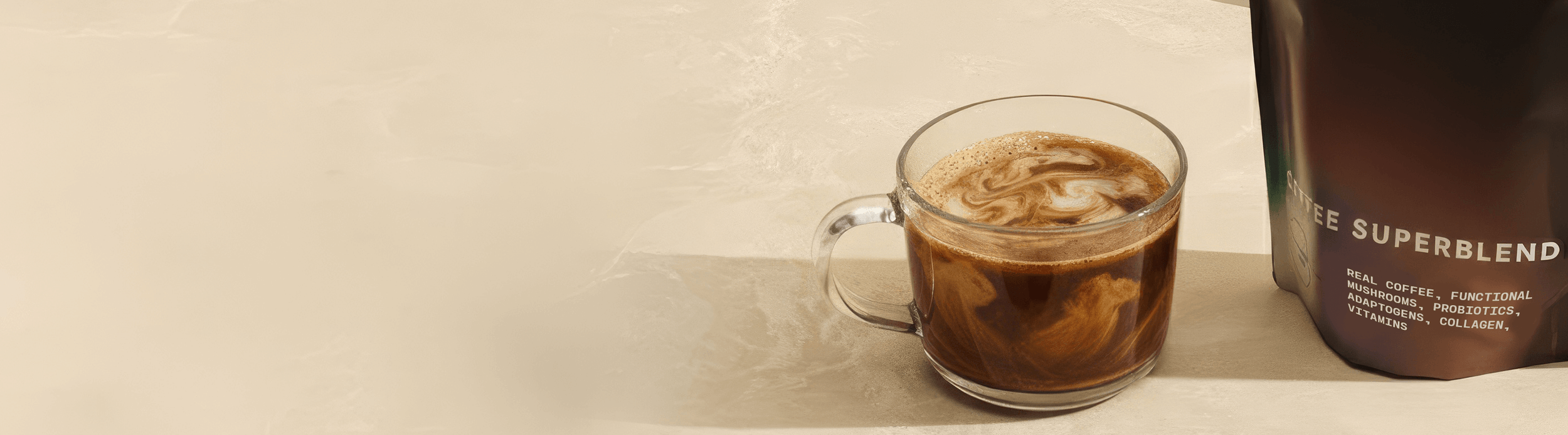 Our Instant Coffee and Latte Superblend include ~45mg of caffeine per serving or roughly half of a regular cup of coffee’s worth.
